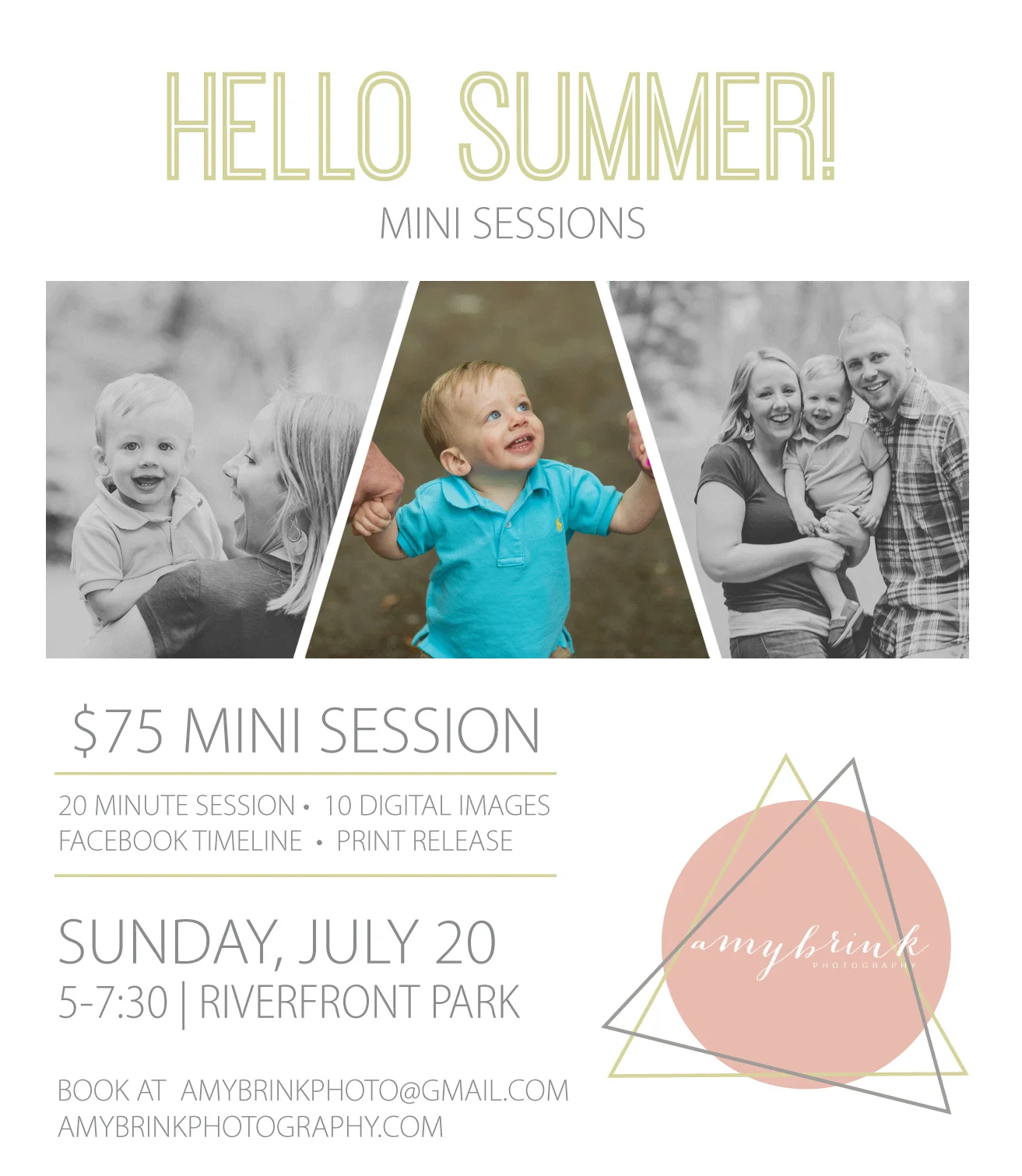 It's not often we see a low humidity streak in July, so I seized the chance to open up some "just because" summer mini sessions this Sunday evening at Riverfront Park in Montoursville. These sessions lend themselves perfectly to a small families, updated child photos, couples, or maternity.